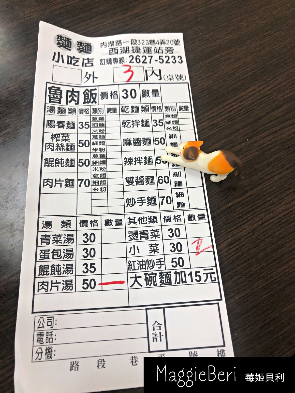 麵麵小吃店地址:台北市內湖區內湖路一段323巷4弄20號(西湖捷運站1號出口)電話:02 2627 5233備註:週六公休實際資訊以店家公告為主如果喜歡我的文章,歡迎轉貼分享♡更多美食資訊▼ FB粉絲團 & Instagram 歡迎按讚追蹤 ♡Instagram : https://www.instagram.com/maggie.beri/FaceBook: https://www.facebook.com/maggieberi/