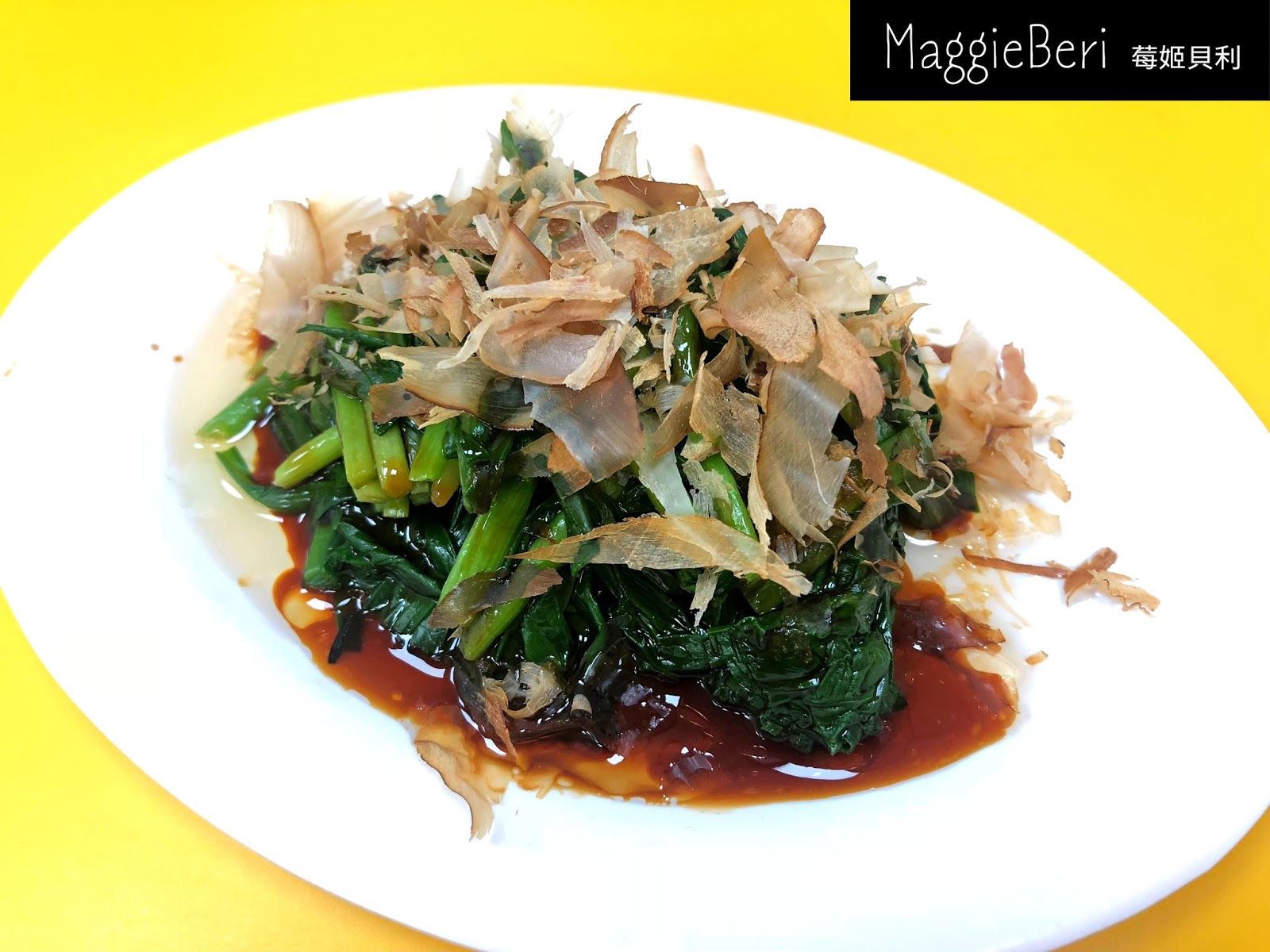 這道滿日式的,上面鋪一層柴魚片,搭配油膏一起沾著吃,很清爽!