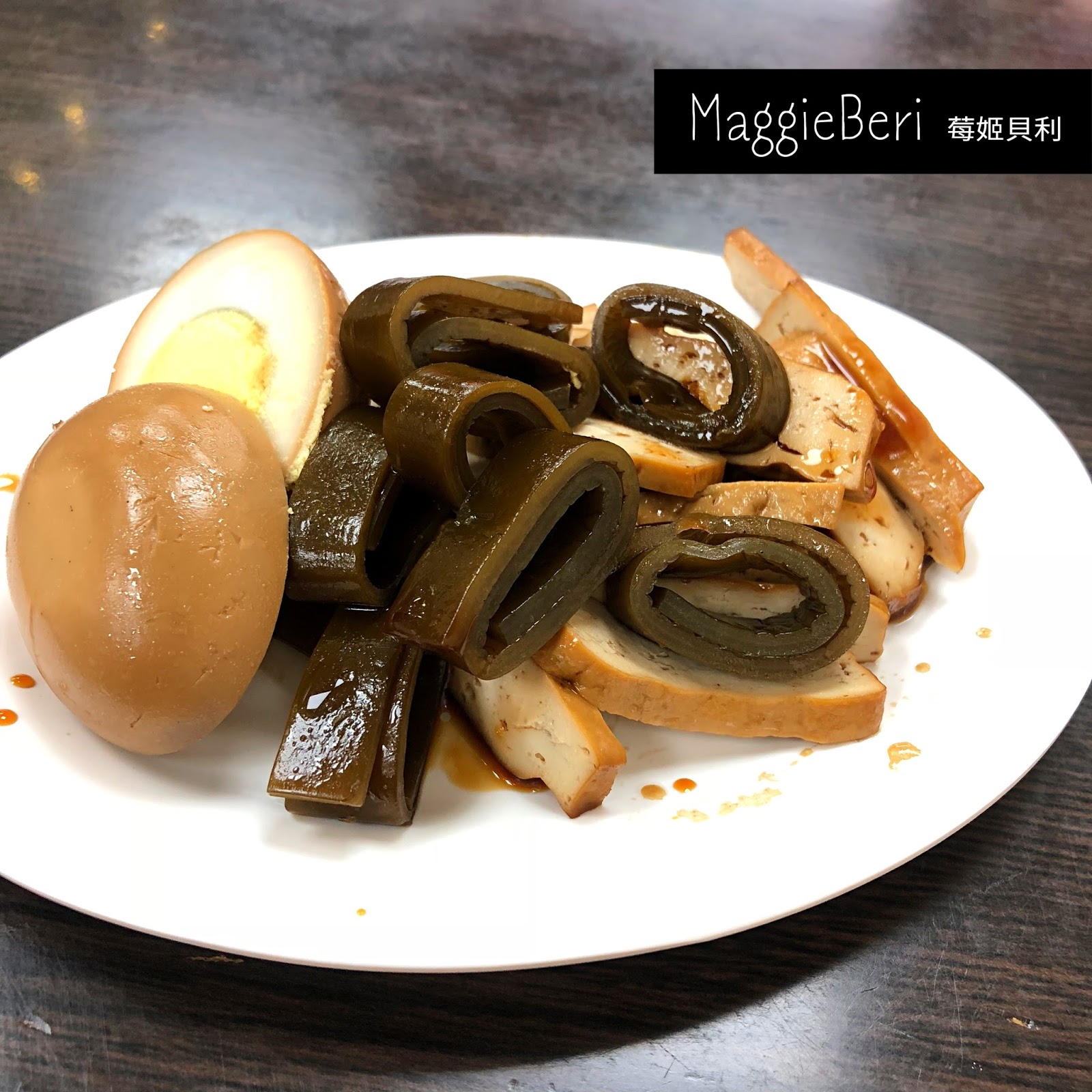 小吃店必備的豆干海帶滷蛋拼盤,還算入味,好吃!