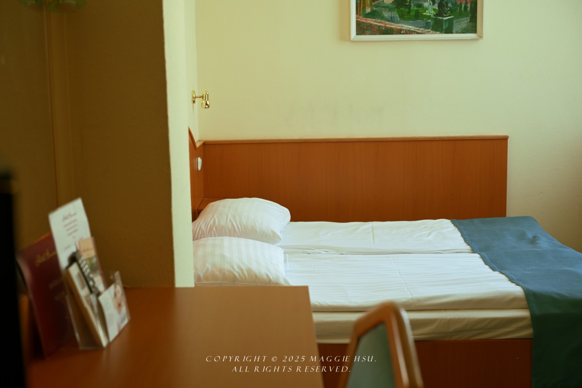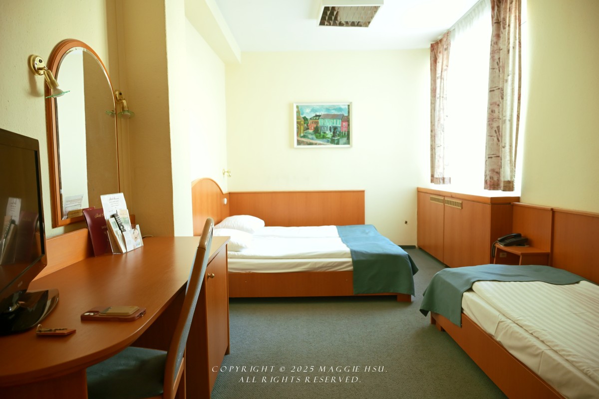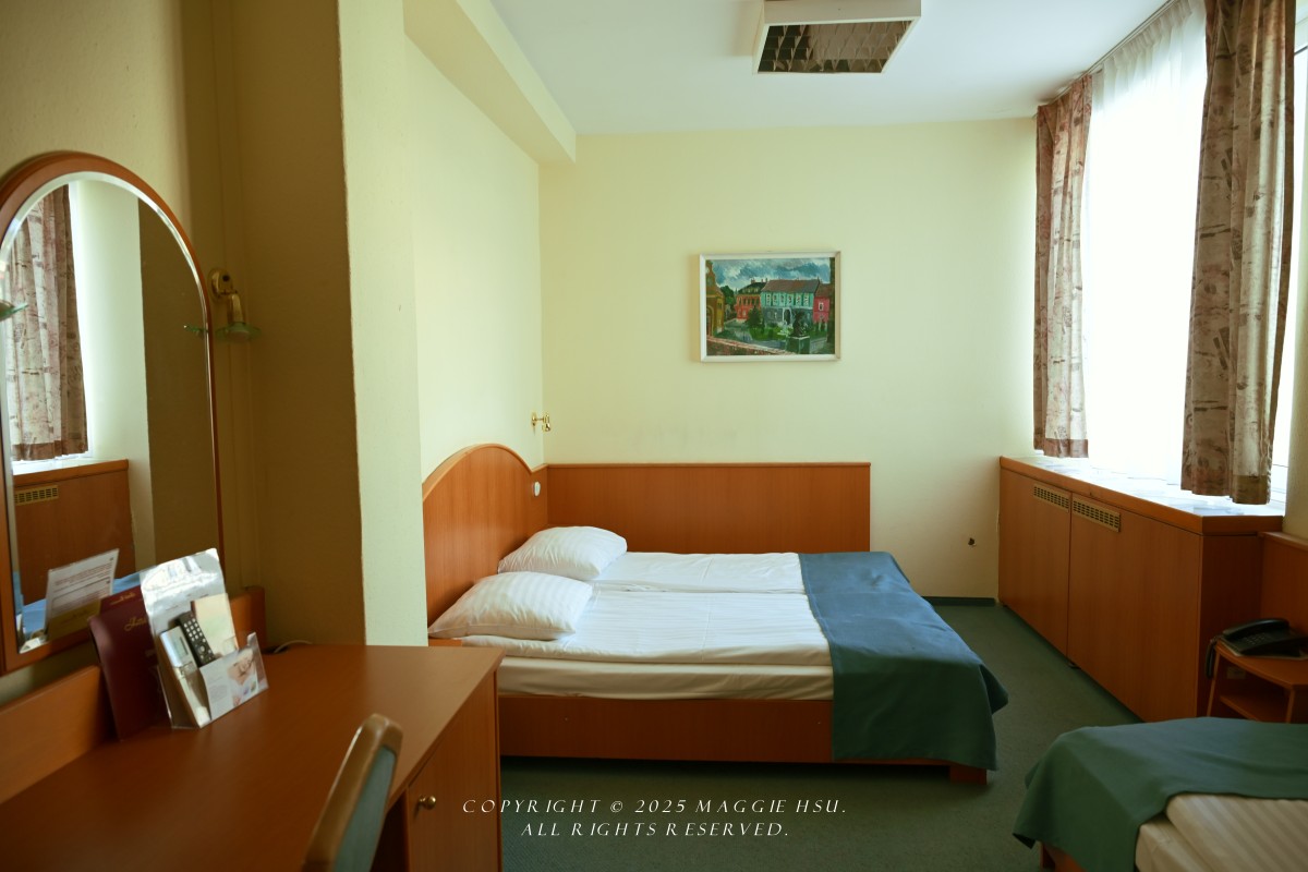 老實說,這家Benczúr Hotel是我這趟奧捷匈之旅中最不期待的,也是所有房間裡面價格最低的,沒想到住起來的舒適度有排行在前三名!它很讚的地方是下午2點就可以check in了,我們上午中午先去走走然後吃飯,接著先去辦入住,安頓好行李,便緊接著走行程,去漁人堡、布達城堡,這兒有公車站牌可以直達。