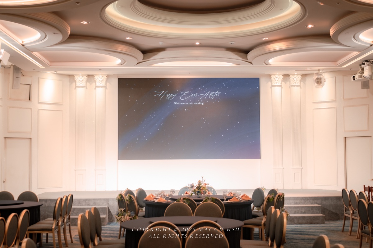 硬體設備部分也全面升級,配備全新 LED 電視牆,不論是播放婚禮影片、現場轉播,或搭配婚禮企劃的燈光與音樂效果,都能完美呈現,讓每位賓客都能清楚感受到現場的感動時刻!