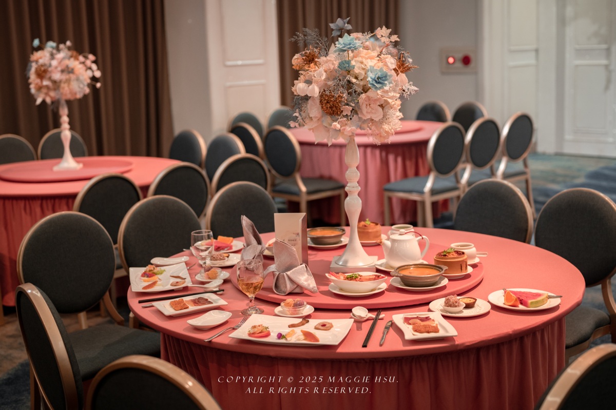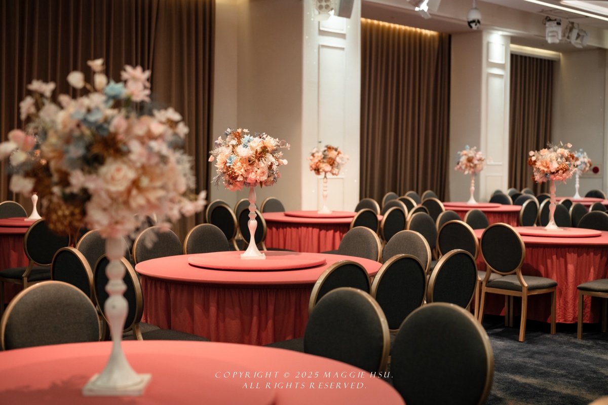 不僅菜色出色,場地設計與服務細節也同樣令人印象深刻。婚宴專案的 CP 值相當高,對小資族來說非常友善。尤其全新打造的「浪花粉」婚禮場地,美得像一場夢,空間雅緻、花藝精緻,每個角落都能拍出唯美照片!無論是預算有限的小資族,或追求質感與氛圍的準新人,都能在豪鼎飯店找到理想的平衡。