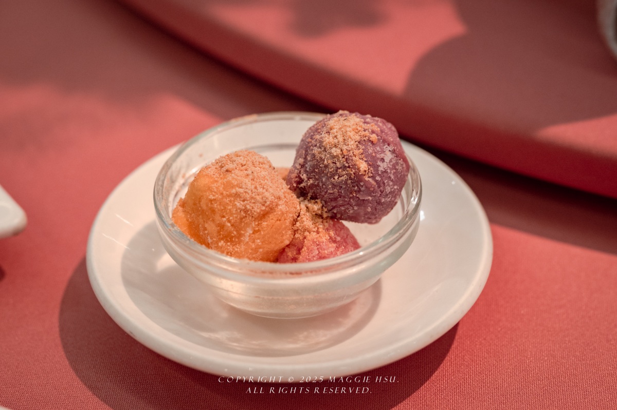 吃婚宴菜最期待炸湯圓了!炸湯圓的魅力不分年齡,內含紅白湯圓、黃地瓜圓、紫地瓜圓,炸至外皮酥脆,內餡柔軟香甜,甜而不膩,也不會太油膩,是最最最完美的開場暖胃角色啦,也象徵婚禮的「圓滿幸福」。