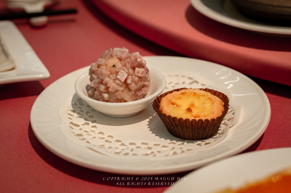 選用紐西蘭頂級鮮奶油製作的葡式焗蛋塔,香濃滑順,外皮酥脆,每一口都是濃郁奶香與柔滑蛋香的完美平衡,替這頓佳餚的熱食部分劃下完美句點。