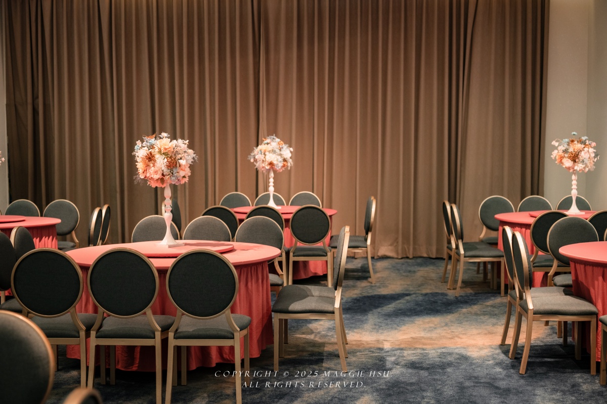 全新婚禮場地「浪花粉」以丹麥極簡風為主軸,結合「浪花」意象,視覺色調柔和,給人一種舒服又放鬆的感覺,低調卻很有韻味,讓婚禮不只是儀式,更是生活風格的延伸與展現。