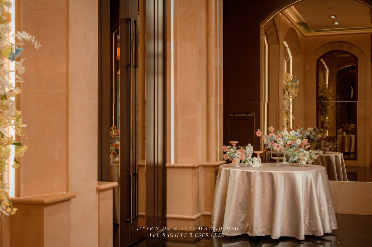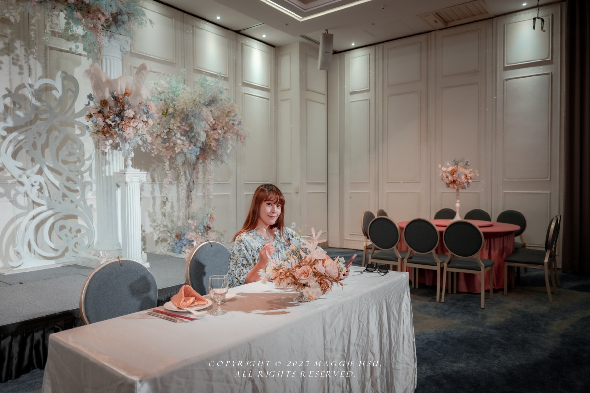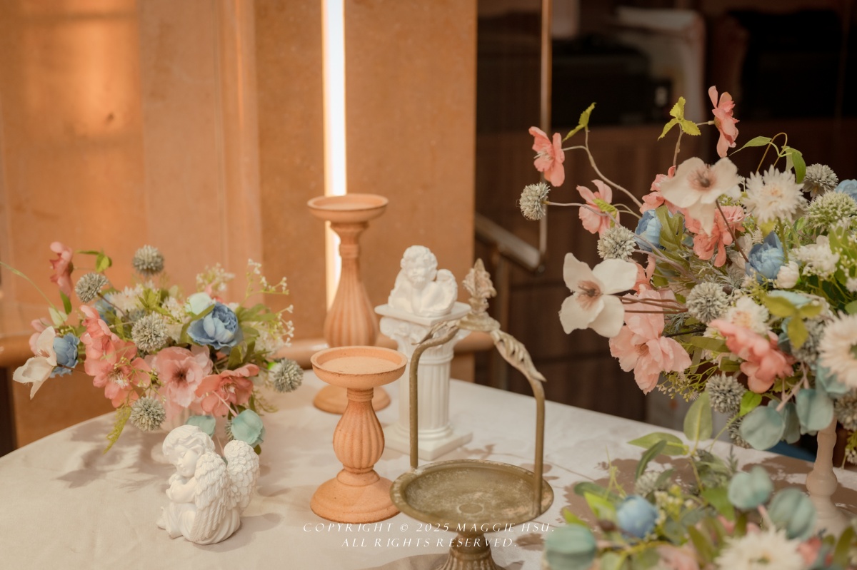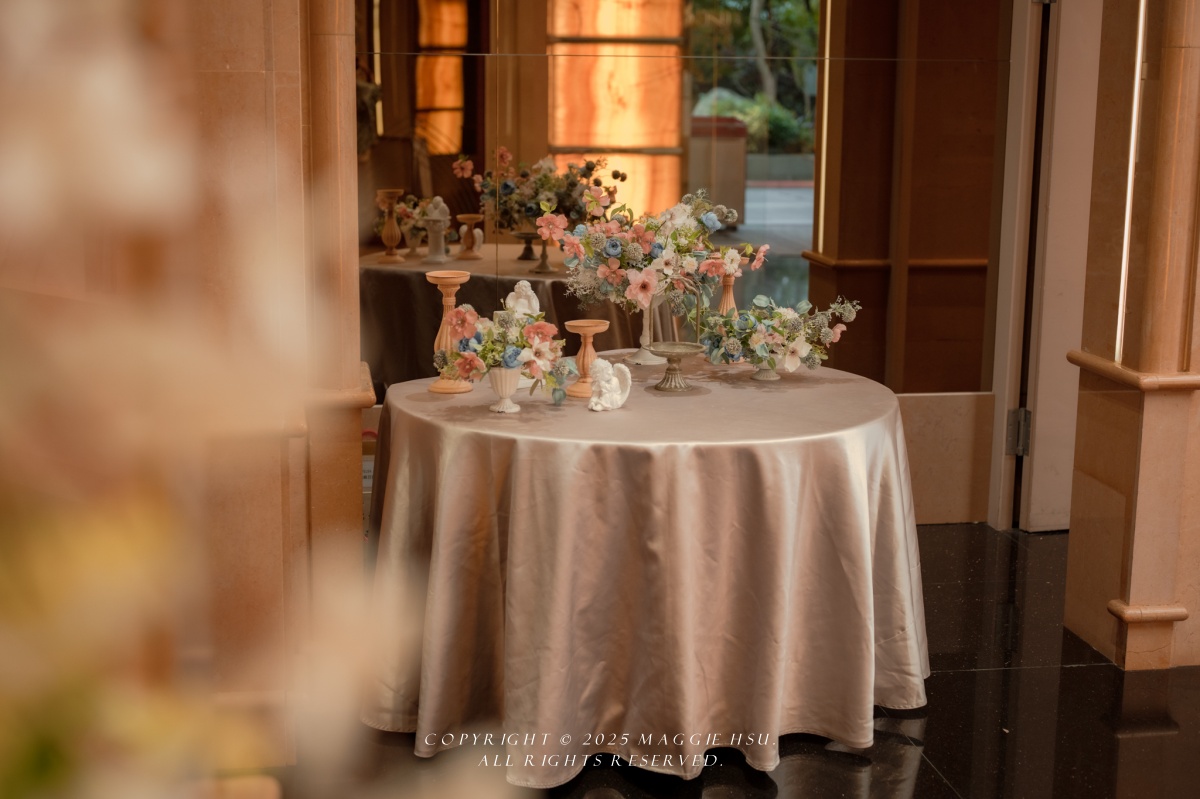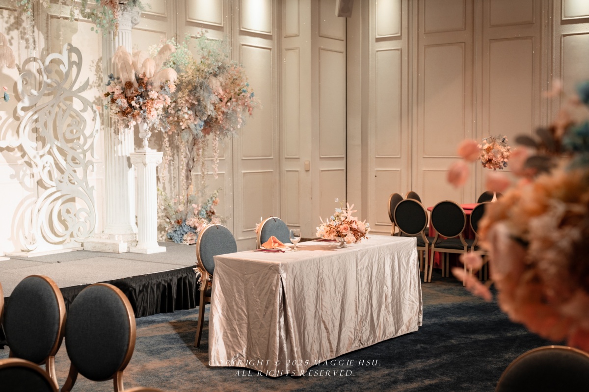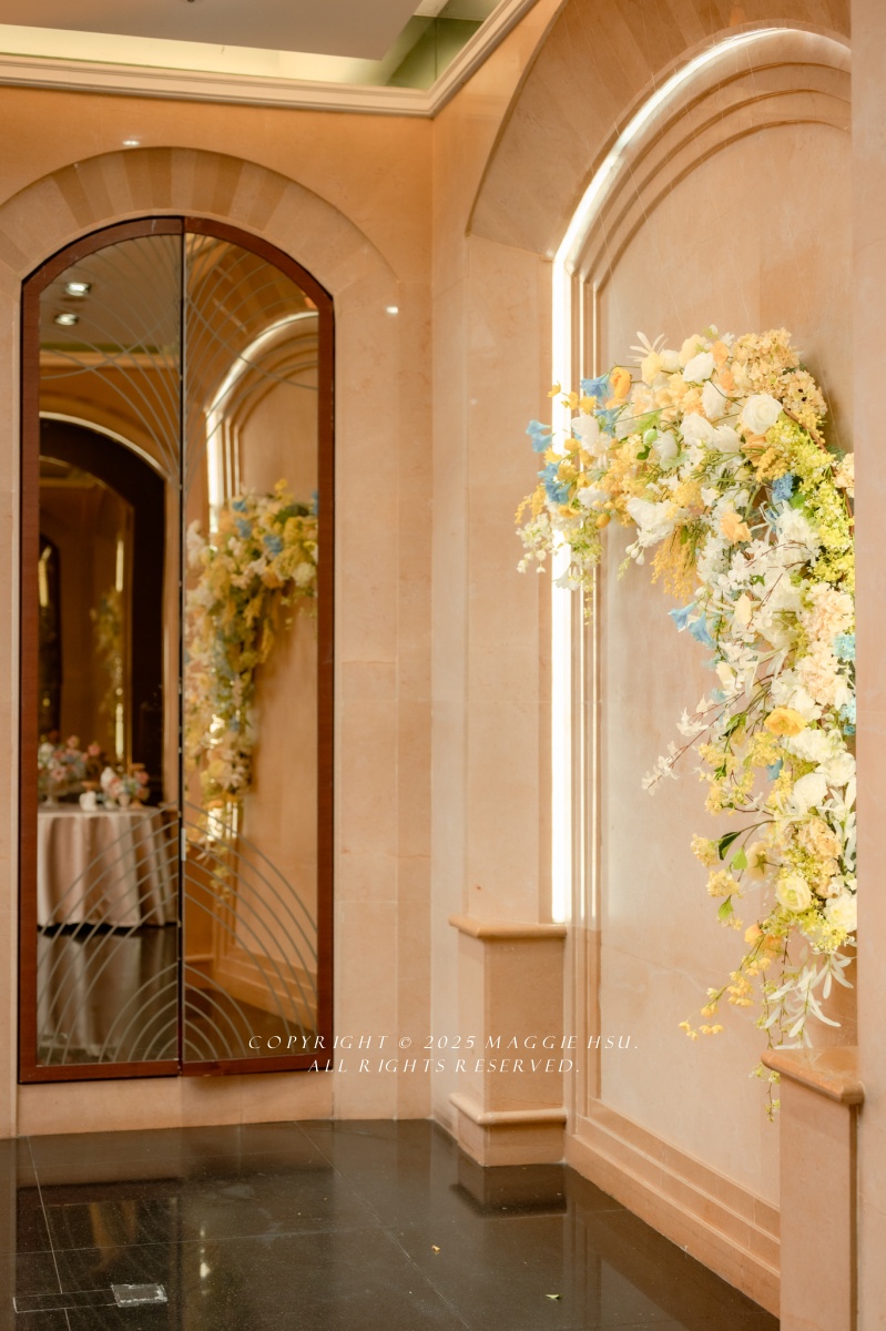 一踏進場就被那份柔和浪漫包圍,到處都能看到質感滿分的花藝佈置,每一個角落都像拍照打卡點,仙氣十足。