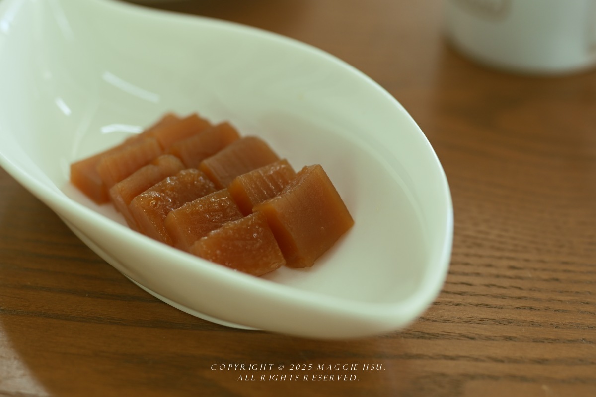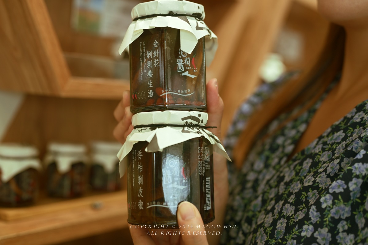 堪稱五星級的剝皮辣椒,簡直就是白飯殺手,我帶了香柚剝皮椒回去,現在餐餐都要夾個兩三條,不然覺得少一味(笑)口感爽脆,辣度溫和,其實單吃也非常適合,不會鹹,作為下酒菜再適合不過,融合花蓮名產柚子,以香柚糖漬熬煮醬汁,散發淡淡柚香十分細膩的風味,而若是想來點酒香還有威士忌剝皮椒。