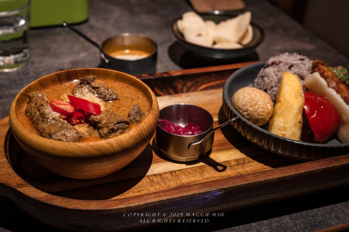 晚餐推薦大家來吃花蓮名店「家咖哩」,順便感受將軍府的夜晚浪漫。推薦濃厚的牛肉咖哩,搭配印尼仁當咖哩醬與鮮嫩的牛肋條非常讚,飯後點心是魚刺人的雞蛋糕,十分澎湃。