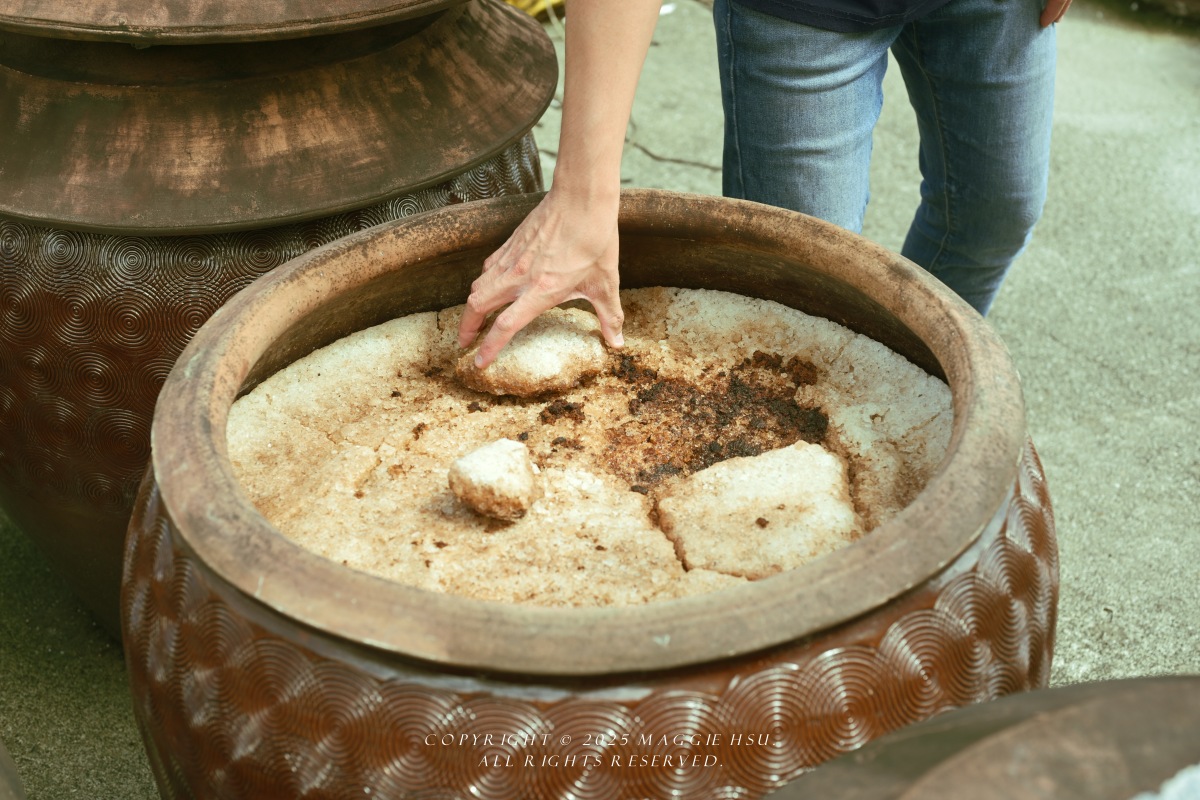 密集排排站的傳統陶缸十分壯觀,需在戶外放置365天日曬與發酵,再抽取原汁作為醬油液。這就是古法釀造的過程,全程天然純釀,不添加任何化學或人工成分,是真正的手工純釀醬油!