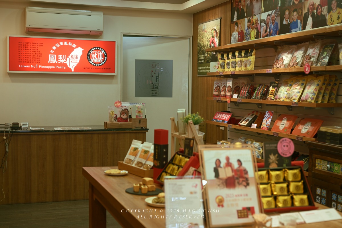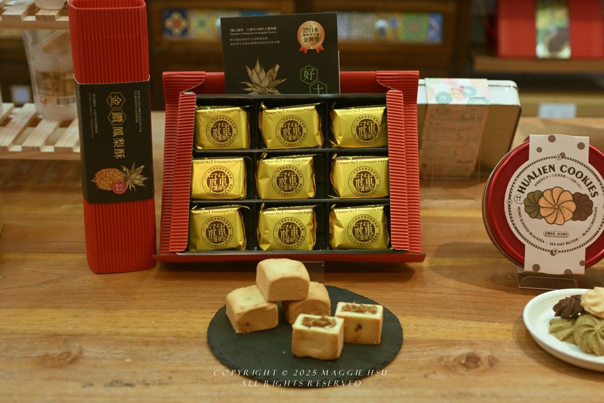 他們家的鳳梨酥甜而不膩,可以吃到實實在在的鳳梨內餡,外皮酥酥香香,吃完會口齒留香啊,除此之外還有創意路線的剝皮辣椒鳳梨酥,還有榮獲2025日本國際伴手禮金牌獎的「洄瀾曲奇」,風味中西合璧,不失本土特色,將花蓮風土打包帶回家!差點忘記,還有我本人吃到很喜歡的「金鑽鳳梨乾」,保留鳳梨天然酸香與纖維。