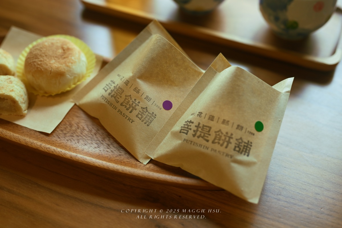 走進花蓮縣餅不要急著採買,不要匆匆離開,這兒特意設置悠閒的座位區,讓路過或專程來訪的旅人能夠停下腳步,吃一份茶點set,體會品牌想傳達的味覺與情感,縣餅菩提酥以白鳳豆沙製作成綿密外皮,內餡融入了花蓮名產番薯、手工麻糬、松子,層次豐富,值得一提的是,常見的豆沙通常被當作內餡,但花蓮縣餅反其道而行,運用了翻新的漢餅技法,呈現外綿、內Q的獨特口感,務必小口、慢嚐,才能把每一層風味細細品出來。