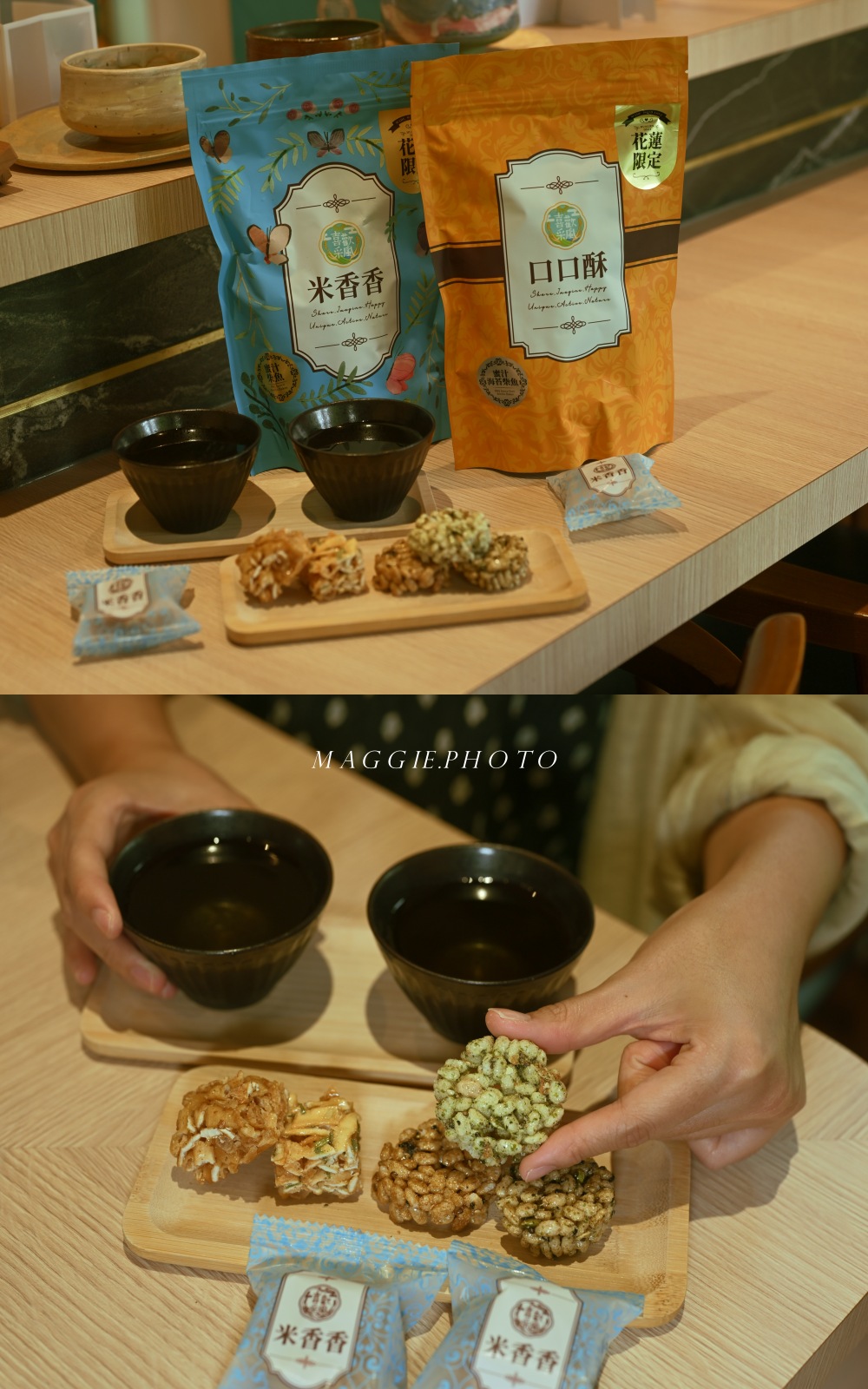來到將軍府,建議大家別匆匆走過,把每間店都細細逛一遍,其實每家店都非常親切、有溫度。「喜歡采風」販售多款花蓮名產,以創意手法顛覆傳統糕餅印象,選用在地天然食材製作,並以精品級的包裝呈現,精緻又具設計感。最受歡迎的「米香香」與「口口酥」不僅包裝講究,口感也細膩可口。