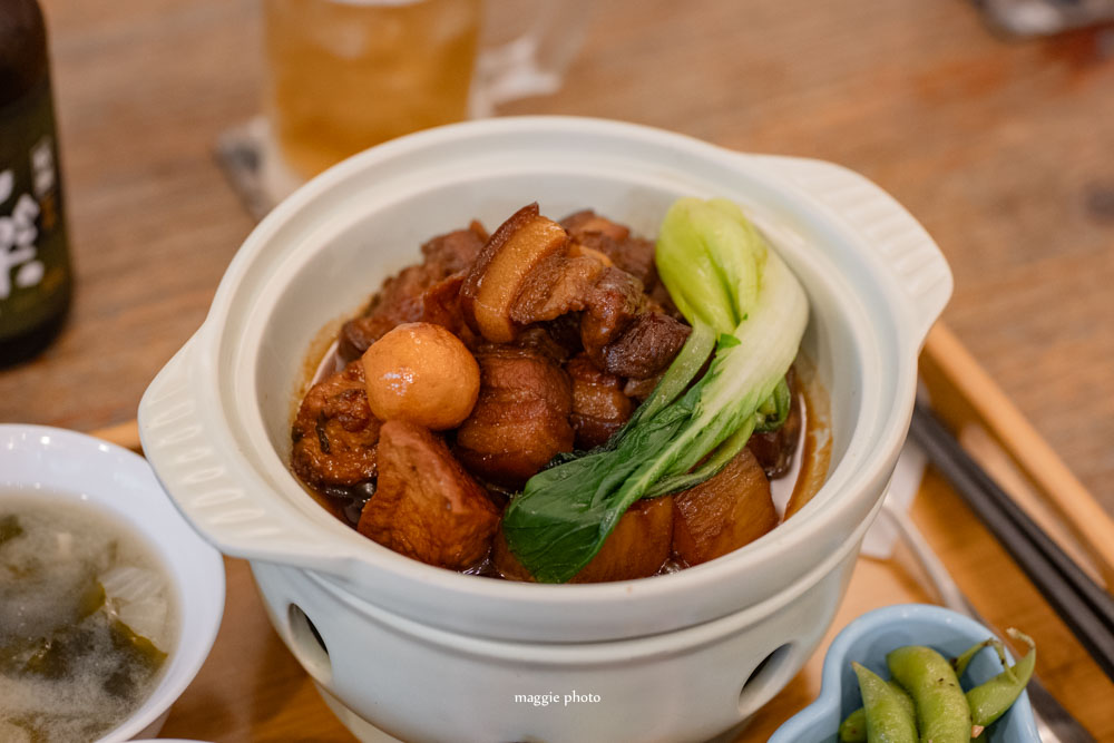 那天品嚐到超級家常味的滷肉(紅燒肉肉鍋),我眼睛都亮了,米飯上搭上香鬆十分開胃。另一份菜品是炸鬼頭刀魚條,魚肉細緻扎實,鬼頭刀是花蓮的海味名產,當地魚貨產量穩定又新鮮,因此你會發現,來到花蓮常常看到以「鬼頭刀」衍生出的在地加工品或美食。