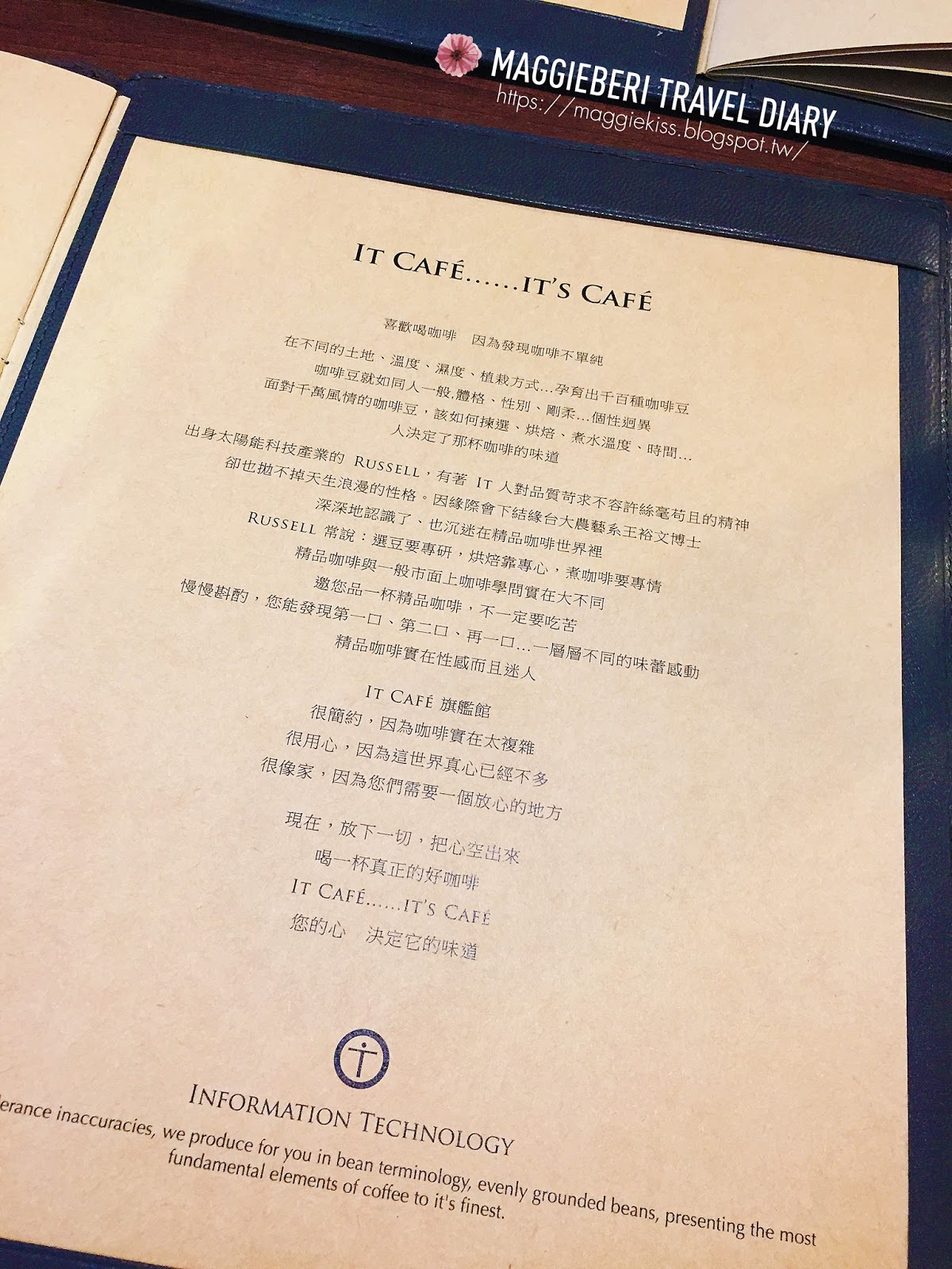 ▲這家咖啡廳顧名思義就是跟IT相關,老闆娘RUSSELL出身於太陽能科技產業,有著IT人對品質苛求與不容許絲毫苟且的精神,同時也具有天生浪漫的個人特質,故以此命名囉 。