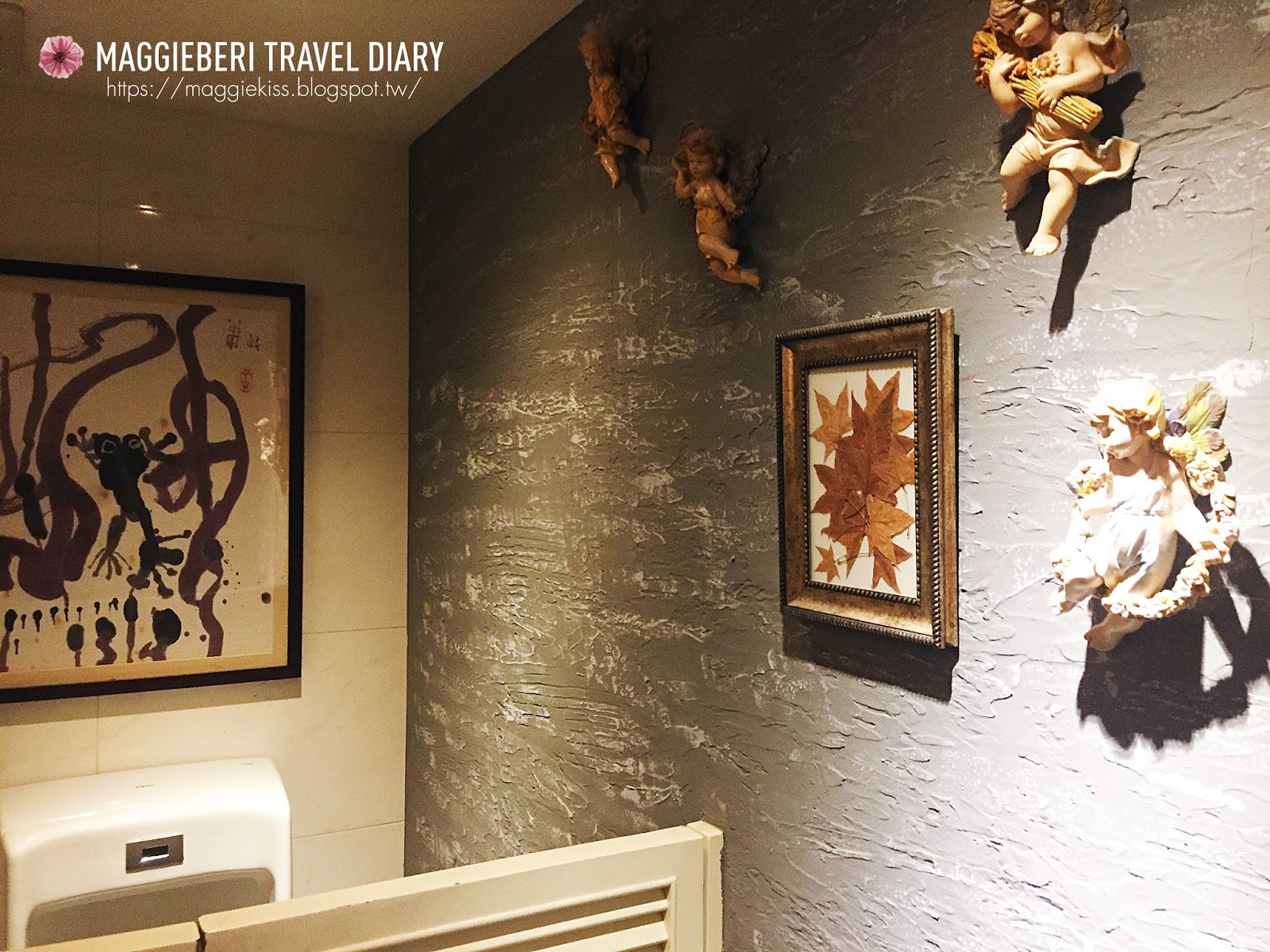 ▲ 廁所只有一間,男女合併的,牆上掛了幾隻小天使,我發現店內許多擺飾都跟”自由”相關,讓人上廁所也能不受拘束 ( 什麼鬼 ) 但我真的很喜歡這樣的裝飾,覺得好自在好愜意。
