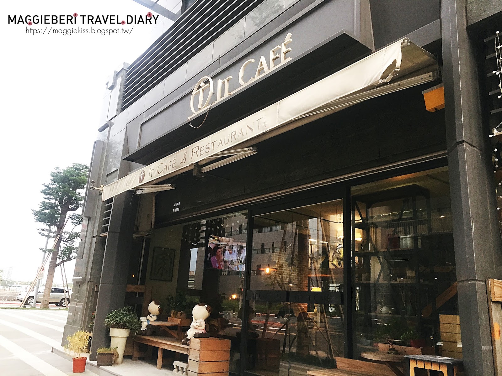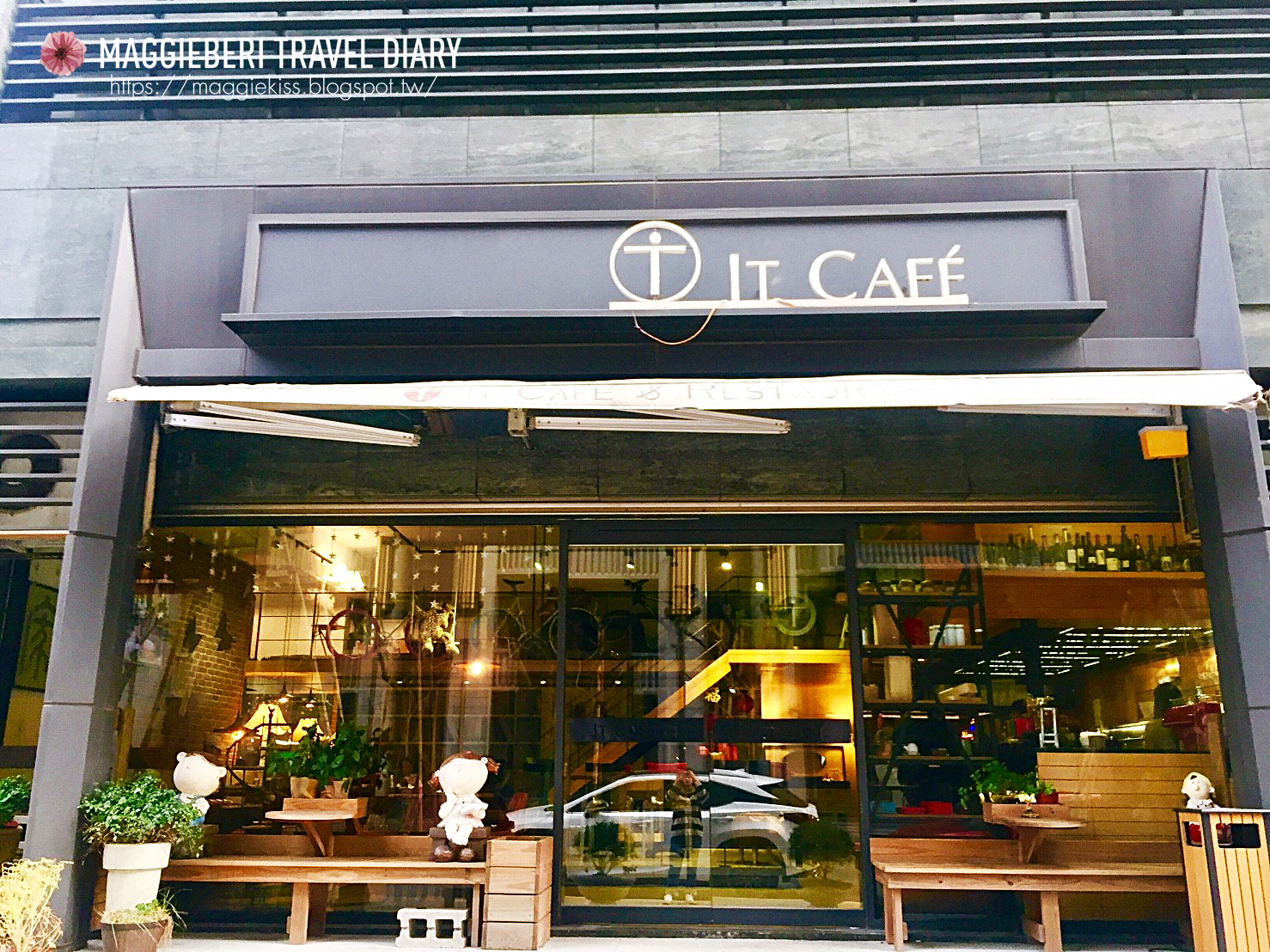 ▲ IT CAFE ‘ 外觀裝潢相當大器,門口擺了兩隻人偶迎接前來的顧客,好溫馨可愛!長凳可提供等候的客人休憩,也是癮君子一解惆悵之地,哈哈。
