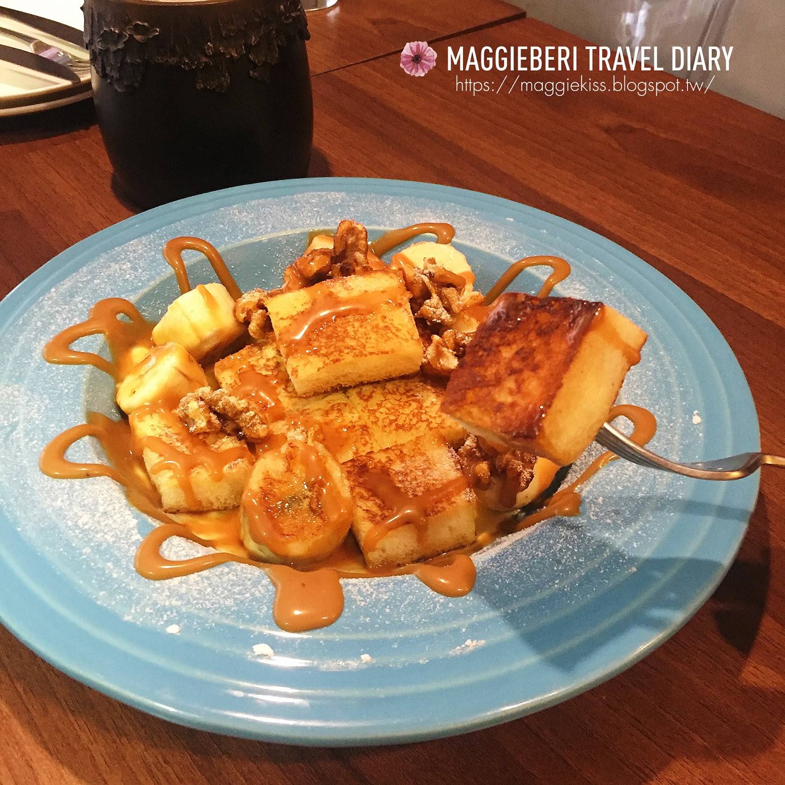 ▲核桃跟香蕉看似和吐司不搭,沒想到十分對味,原本以為太妃糖會很甜膩,又搭配香蕉,是不是會很膩,但完全不會!