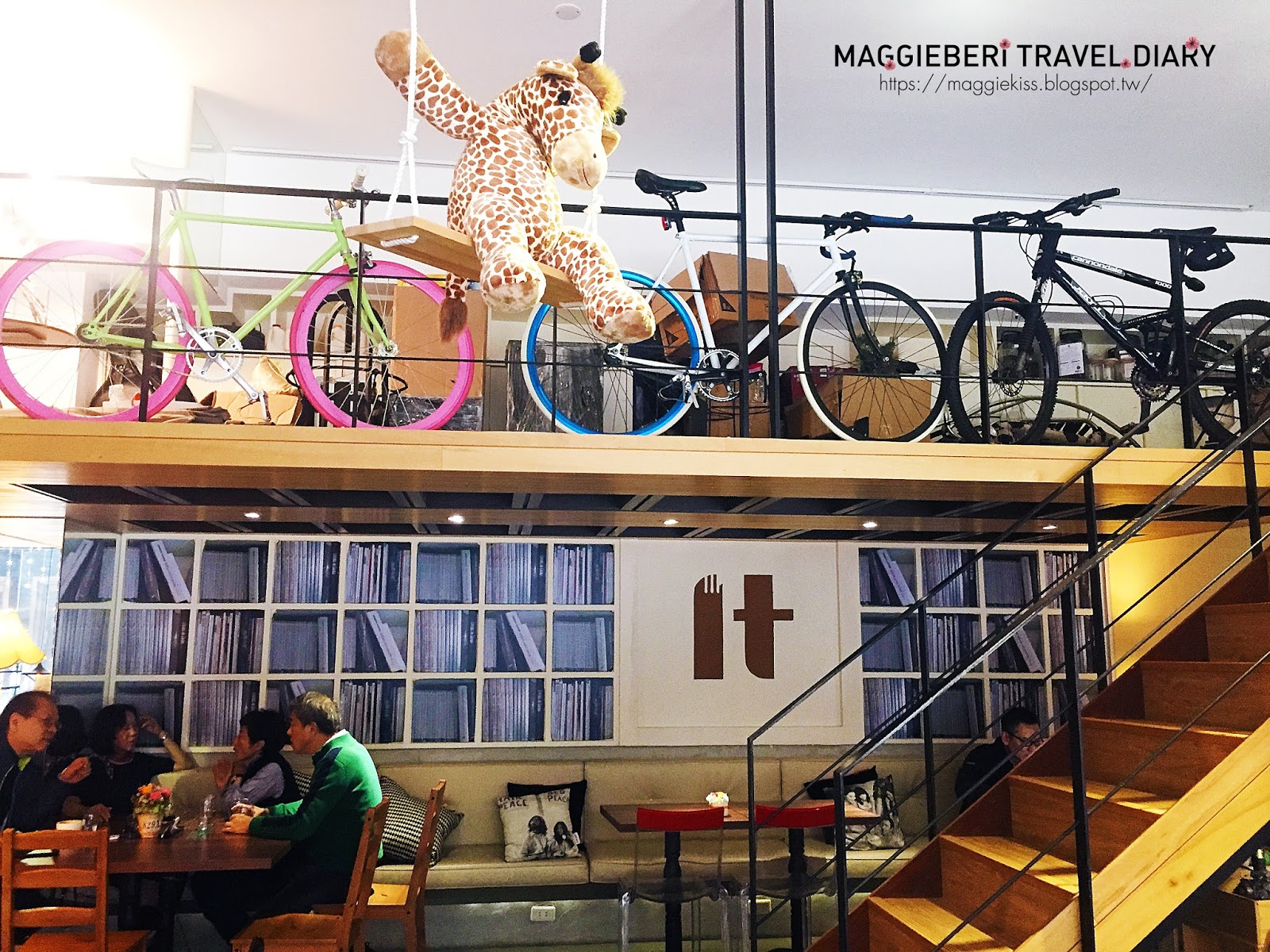 看到挑高的設計,整個人心癢癢 (我是挑高&樓中樓空間的愛好者) ,總會有種莫名的愉悅感 (怪人一個) ,二樓空間的欄杆周圍,擺放了多台單車,也許是老闆的收藏品吧,這樣的布置完全不顯得突兀,反而增添一種休閒感,給人放鬆的感覺。
