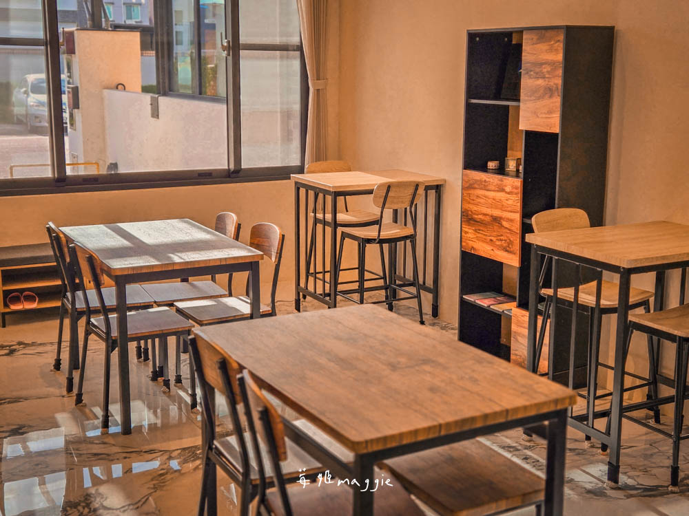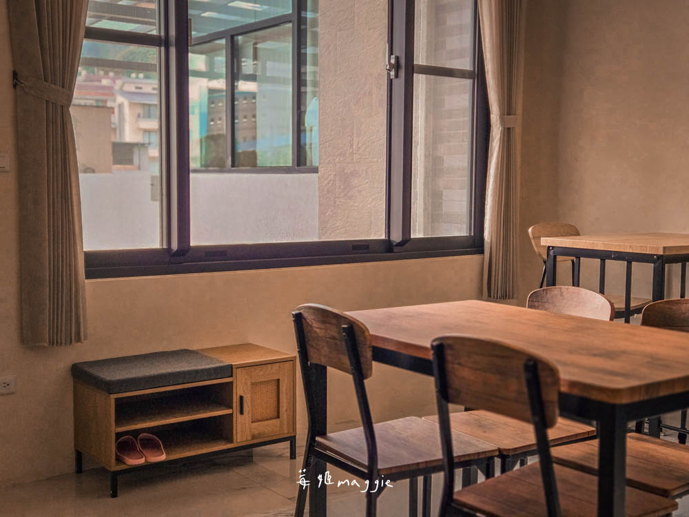 室內以大理石磁磚搭配木質家具,簡約清爽,整體氛圍超放鬆。