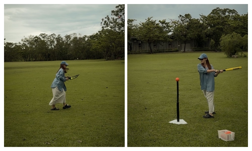 老實說,我完全不擅長各種運動,這次算是破天荒的第一次體驗!旋風球還算親民,就算是像我這樣的運動白痴也能快速上手,但,一換到樂樂棒球,我整個慌了手腳─,揮棒不是落空,就是直接打到桿子,笨拙得讓自己都想笑。