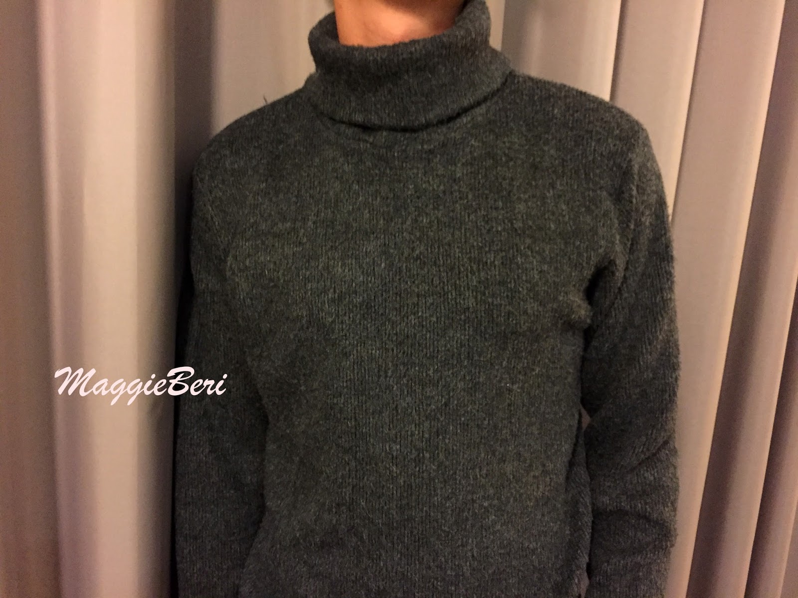 高領的選擇,儘量選擇寬鬆的領子,不要太貼合脖子,這件的高領反折後,距離脖子是有空間的,能夠凸顯臉部的輪廓,以及修飾臉型,太貼脖子的高領會有反效果,顯得臉大,有擴張的感覺哦!