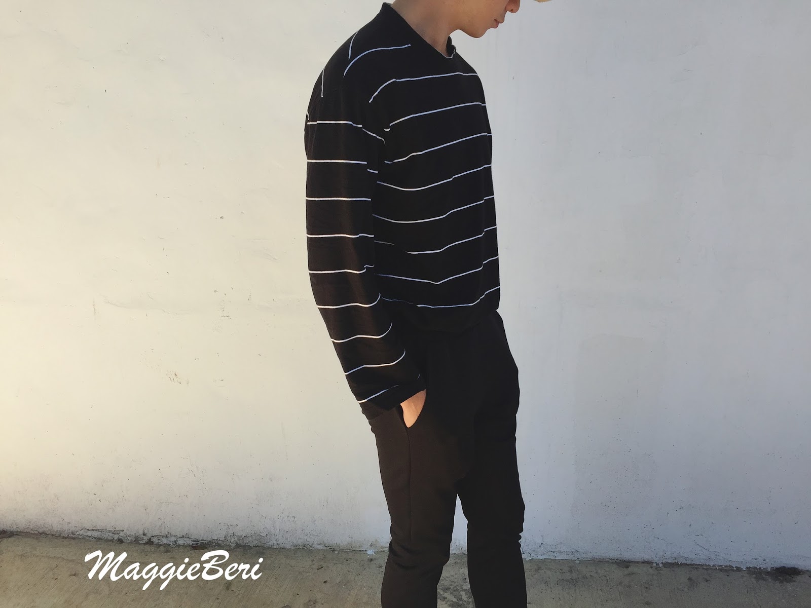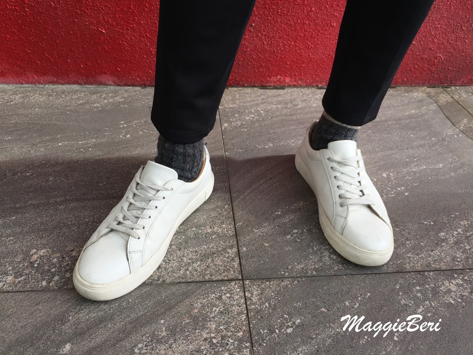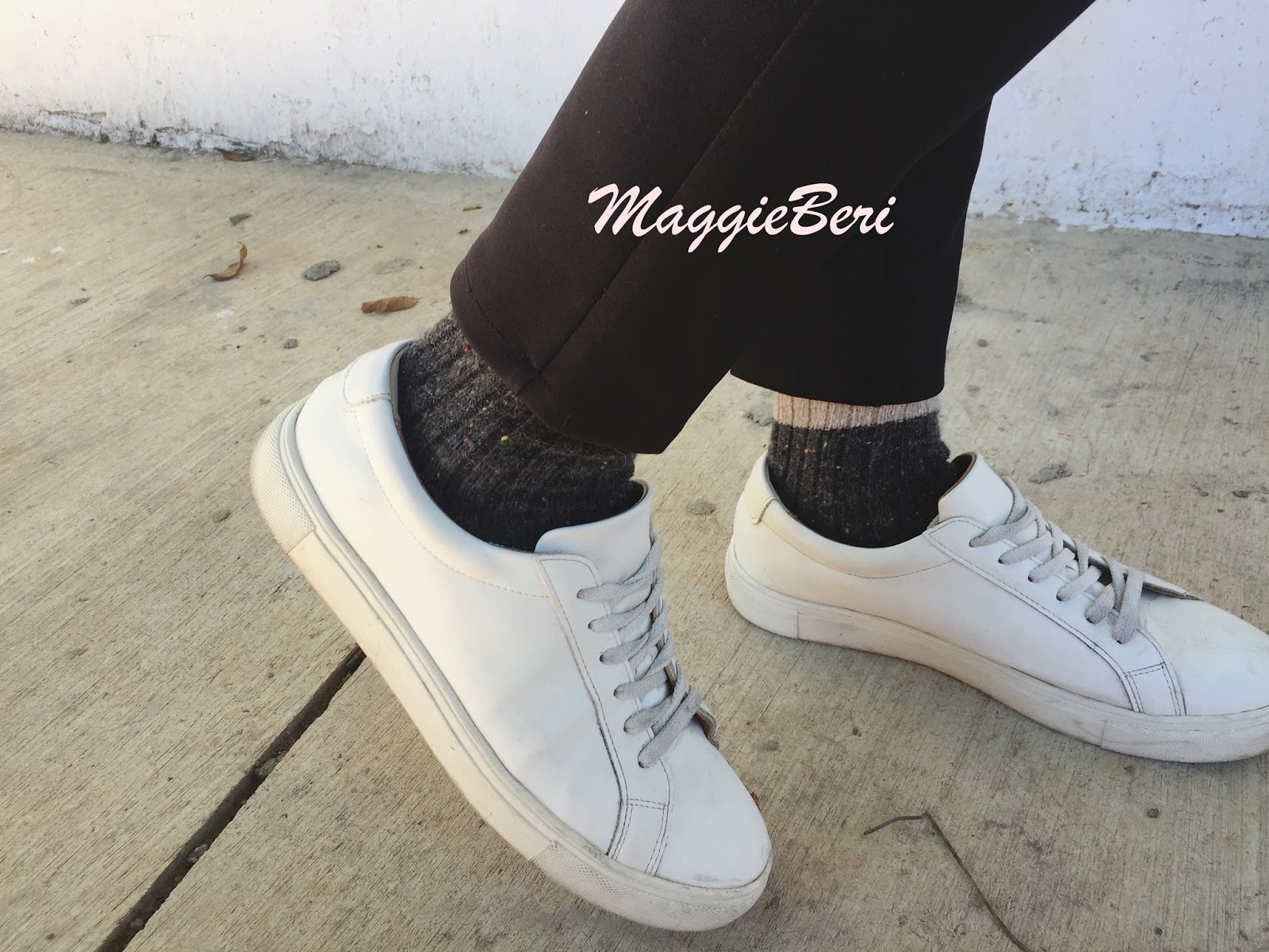 ░ LOOK 5:深色毛衣+條紋九分褲+白鞋