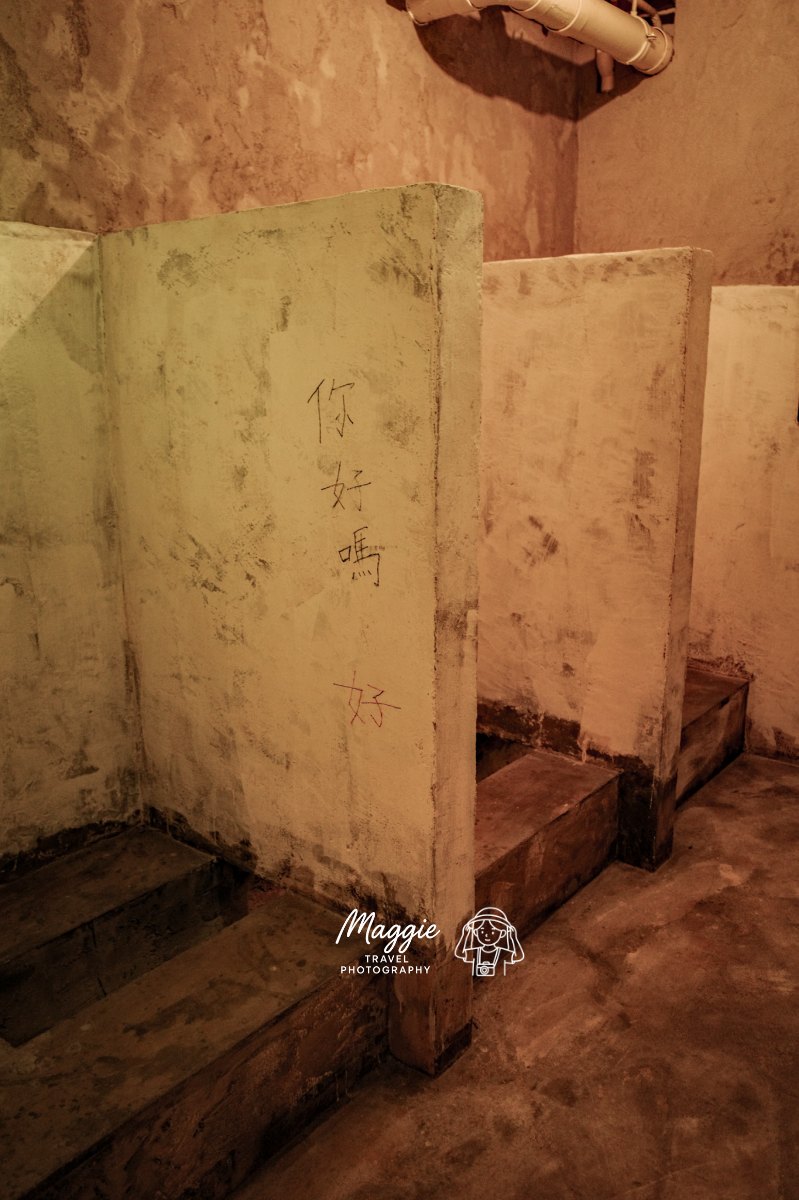 還原了昔日的公共廁所,破舊感做得有夠逼真,包括孩子的隨意塗鴉,筆跡稚嫩。